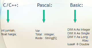 Cara Pendeklarasian variabel sangat tergantung dari struktur program suatu bahasa pemrograman.